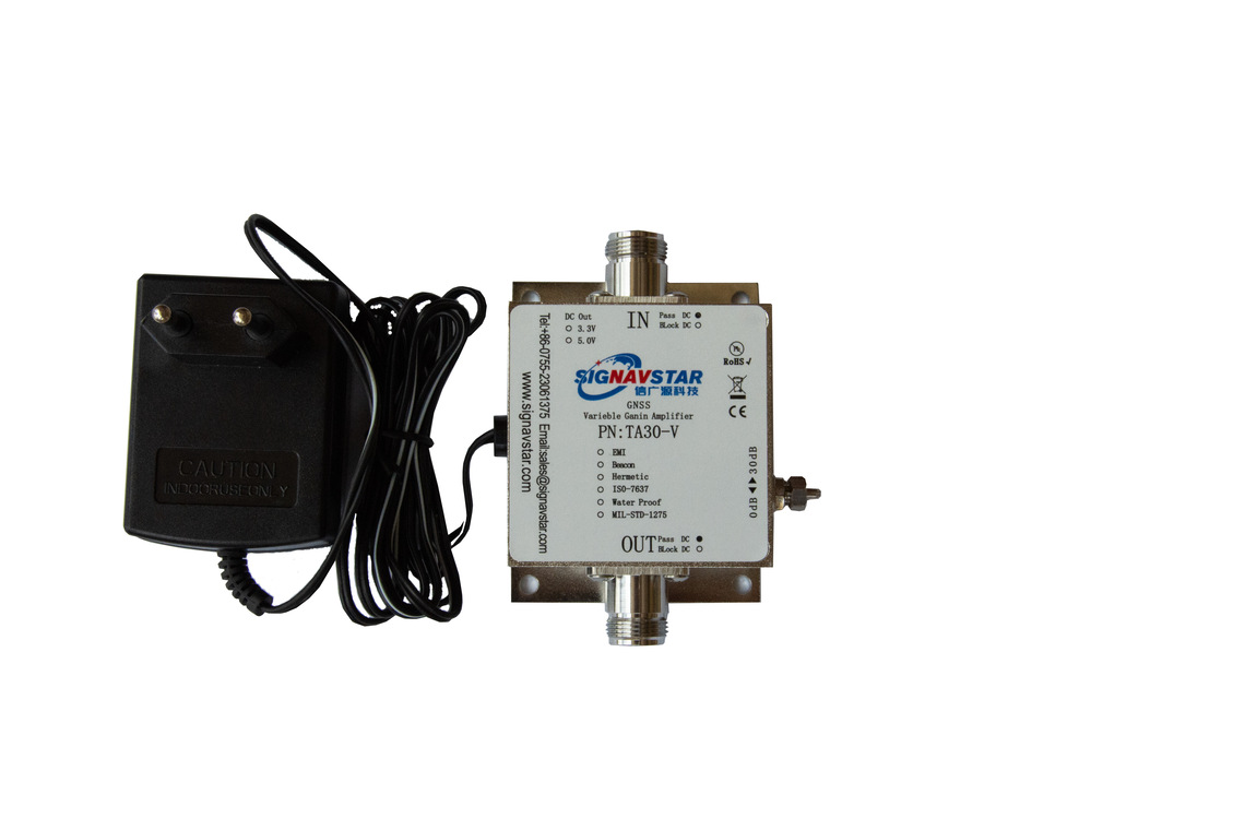 TA30-V是一款对GNSS信号放大的可调放大器,0-30dB自由调节,自带电源,向输入输出馈电,和接收、发射天线组合一套转发器。